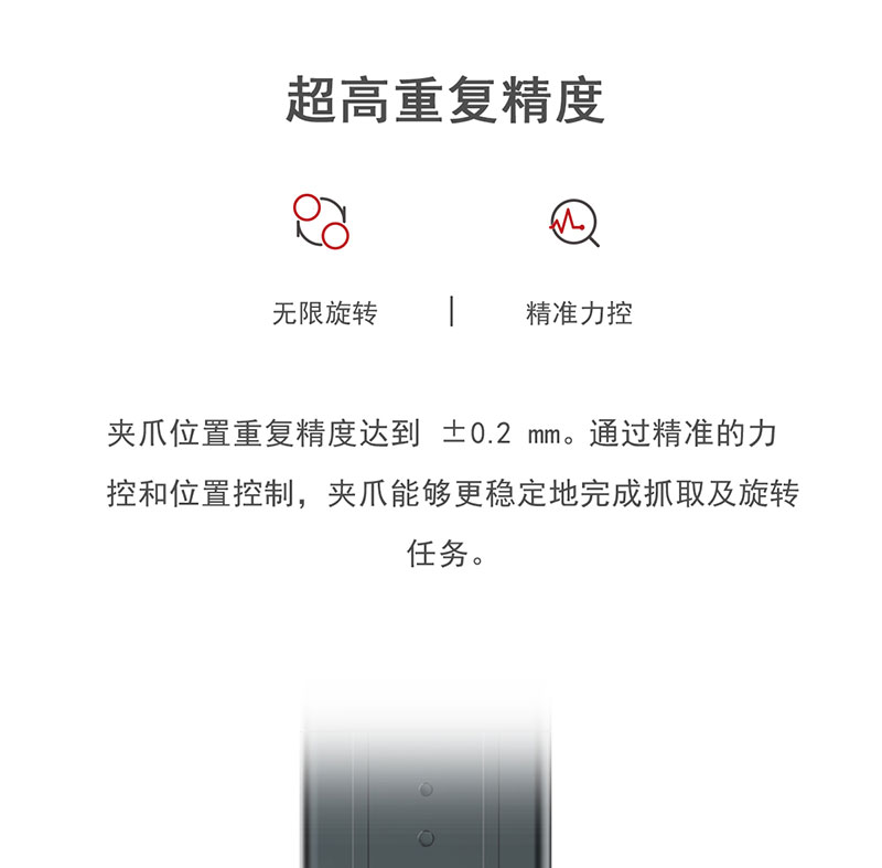 慧靈HITBOT,旋轉電動夾爪Z-ERG-20C,集成伺服系統的旋轉電動夾爪,小體積,性能卓越,力、位、速度可以通過Modbus精準控制,支持柔性夾持,可輕易夾取易碎物品,可用于生物醫藥、鋰電池、汽車產線、食品等等,應用場景廣泛!