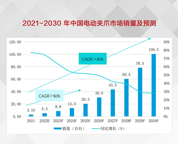 2021-2030年中國市場電動夾爪銷量及預測